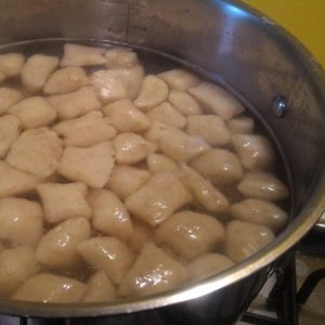 Tuffateli in abbondante acqua salata e girateli dolcemente, dopo circa 50 secondi torneranno a galla. Pescateli un po’ alla volta e scolateli. Disponeteli in un bel piatto di portata.