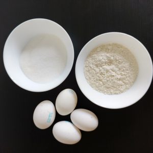 Lavoriamo i tuorli con lo zucchero fino ad ottenere una crema quasi bianca, basteranno pochi minuti. Aggiungiamo quindi la farina ben setacciata poco per volta.