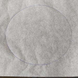 Disegniamo su un foglio di carta da forno la circonferenza della teglia a cerniera dove andremo a montare la nostra torta. Con gli ingredienti indicati noi abbiamo ottenuto 3 dischi del diametro di 22 centimetri.