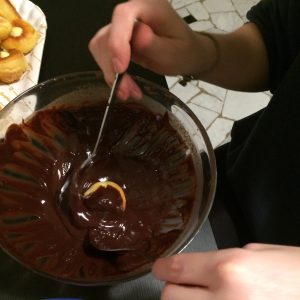 La glassa l’abbiamo fatta con una golosa ganache al cioccolato fondente.