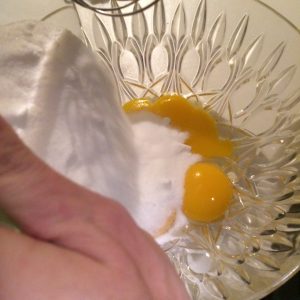 Ingredienti: 4 tuorli, 140 g di zucchero, 400 ml di latte, 45 g di farina e la buccia di un limone. Sbattete i tuorli con lo zucchero fino ad ottenere una crema liscia e chiara (diventa chiara perchè incorpora l’aria). In un pentolino si scalda il latte con la buccia del limone intera, fino a farlo bollire. Si mette un po’ di latte nei tuorli con lo zucchero, si mischia, e poi si mette tutto il composto nel pentolino con l’altro latte… a questo punto la buccia di limone l’abbiamo tritata e rimessa dentro (se vi piace un forte sapore di limone e sentire i pezzetti di limone sotto i denti, altrimenti lasciatela intera durante la cottura e poi toglietela). Tenete la fiamma bassa e mescolate bene. Si aggiunge poi la farina setacciata si porta ad ebollizione fino a farle raggiungere la consistenza desiderata. Ricordatevi che quando si raffredda diventerà ancora più densa.