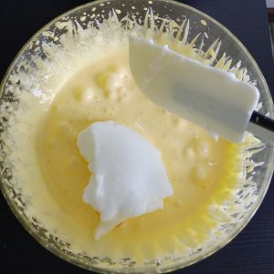 Uniamo i composti. Gli albumi a neve vanno dentro ai tuorli e mai il contrario. Aggiungiamo i tuorli un po’ per volta mescolando dolcemente con movimenti dal basso verso l’alto. Aggiungiamo per ultima la farina, poco per volta, ben setacciata, continuando a mescolare delicatamente.