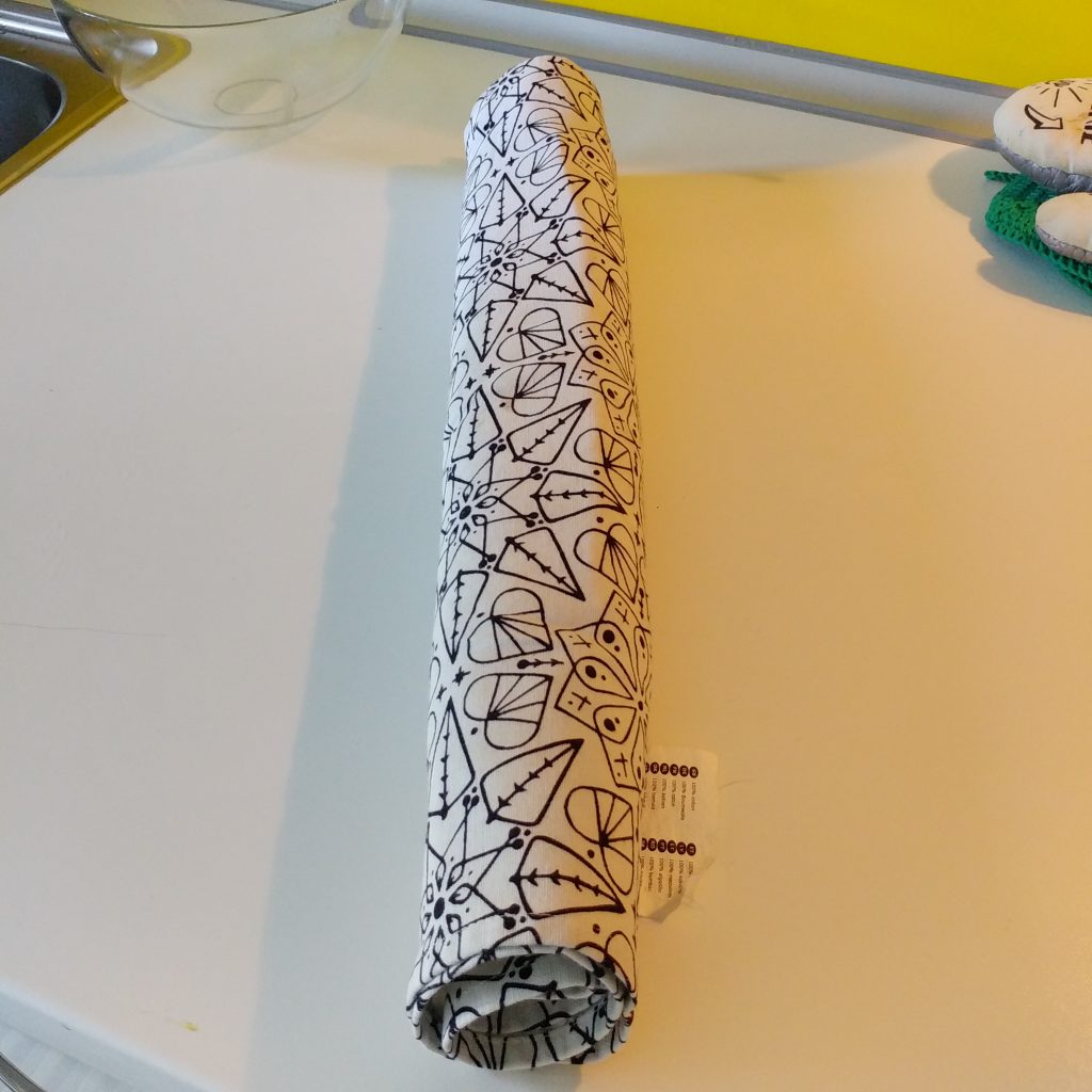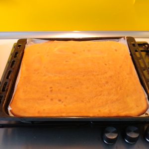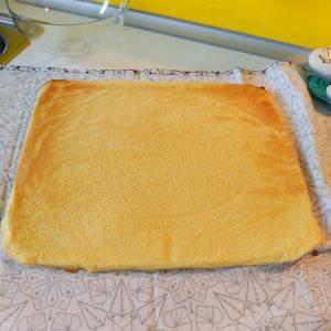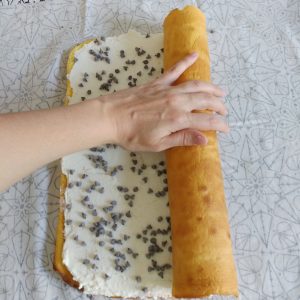 Avvolgiamo il rotolo intorno al canovaccio e facciamo raffreddare.