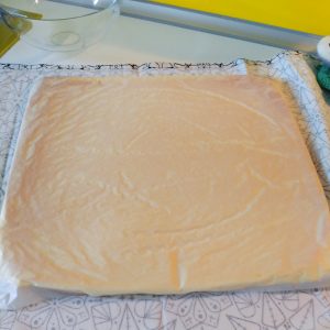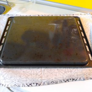 Tiriamo fuori la laccarda e, ancora calda, facendo attenzione a non scottarci, copriamola con un canovaccio pulito. capovolgiamola, togliamo la laccarda e stacchiamo piano piano la carta da forno.
