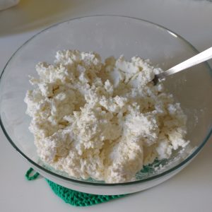 Lavorate in una ciotola la ricotta fino a farla ammorbidire per bene. Aggiungete poco per volta lo zucchero setacciato e, se vi piace, la scorza grattugiata di un limone.