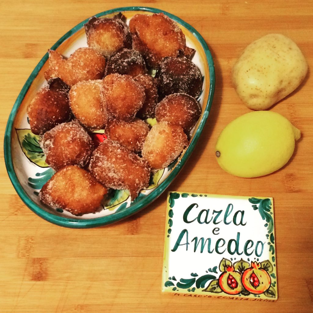 Anche quest’anno ce ne siamo ricordati un po’ last minute, ma non potevamo fare finta di niente. Abbiamo così chiamato al volo casa giù e cercato di tradurre la ricetta di zia fatta di “un cucchiaio, una confezione, vedi quanto basta” in delle unità di misura  condivisibili con tutti voi… le dosi sono minime, giusto per toglierci lo sfizio e non passare tre ore a friggere come l’anno scorso! Ovviamente potete moltiplicarle e regalare sfinci a tutto il quartiere 🙂
