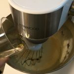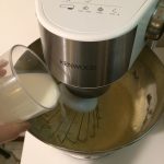 Incorporiamo la pasta di pistacchi (qui trovate la ricetta), l’olio di semi e il latte e lavoriamo per qualche minuto.