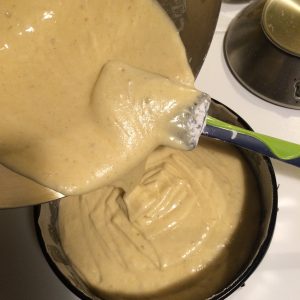 Versiamo il composto in uno stampo da 21 cm ricoperto da carta da forno e facciamo cuocere in forno caldo, ventilato, a 150° per 40/45 minuti.