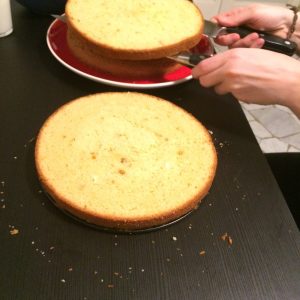 Una volta che il pan di spagna e la crema sono freddi possiamo assemblare la nostra torta.