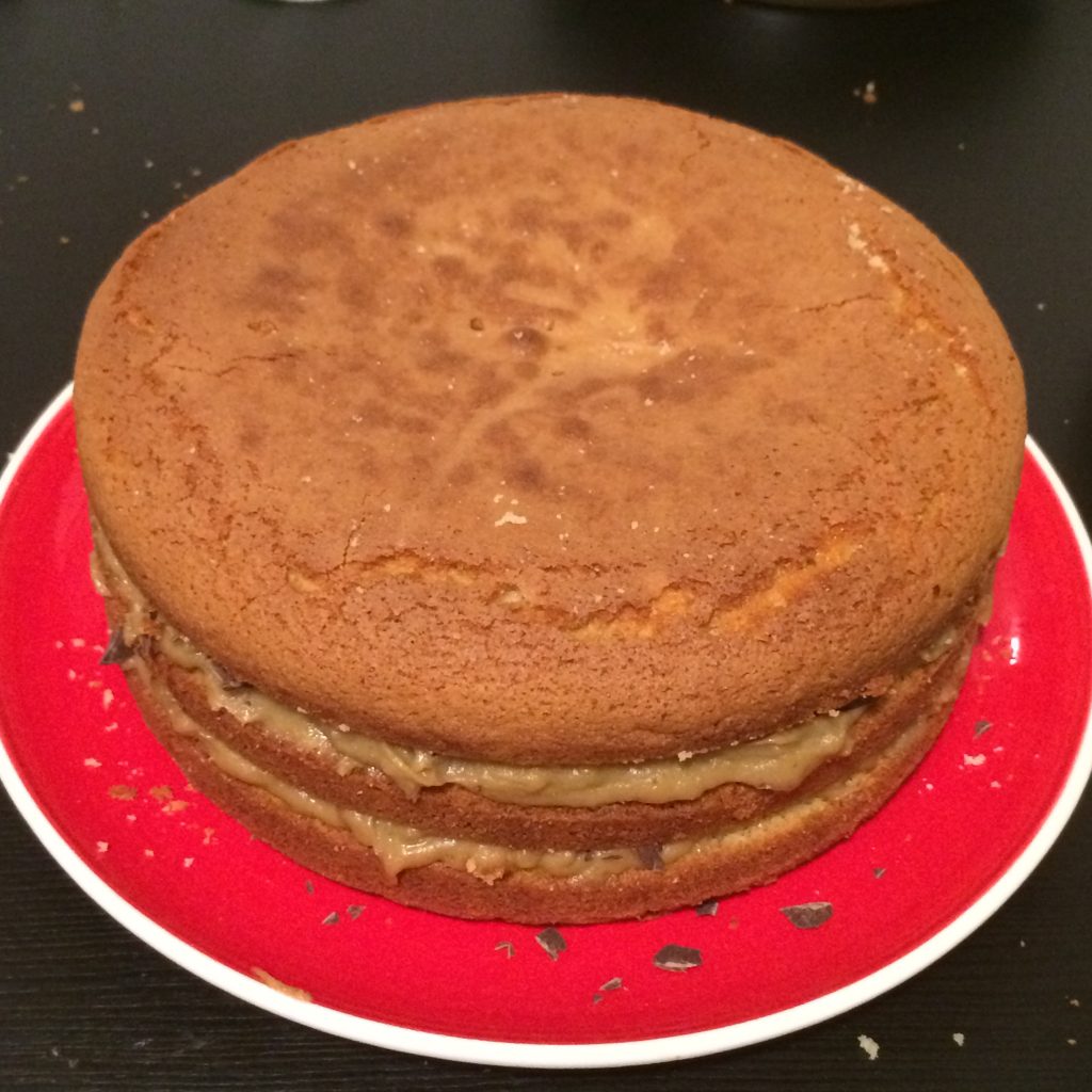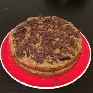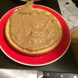 Mettiamo il disco centrale e ripetiamo l’operazione con il resto della crema e cioccolato e coprite con l’ultimo disco.