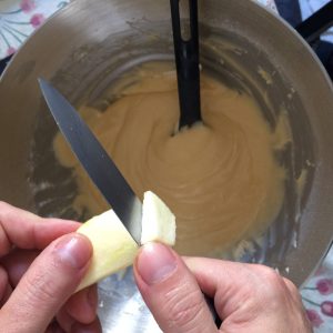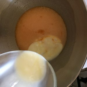 Dopo qualche minuto aggiungiamo il burro che avremo fatto sciogliere e il latte.