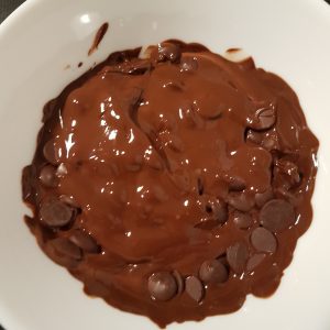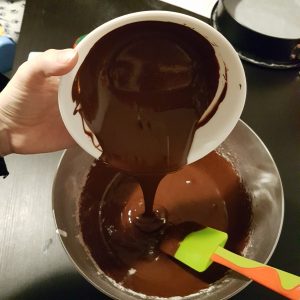Nel frattempo fate sciogliere il cioccolato a bagnomaria o in microonde e aggiungetelo al composto.