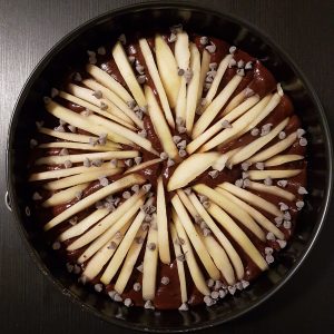 Pere e cioccolato è un grande classico dell’autunno e a casa avevamo proprio delle belle pere, sode e profumate! Per fare questa torta infatti le pere non devono essere troppo mature.